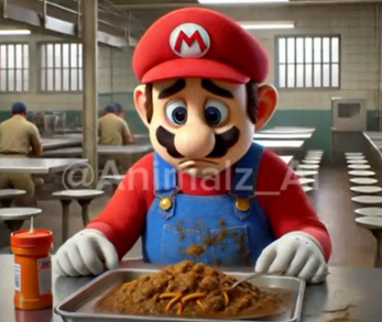 mario: oh mamamia! i got a gross spaghetti with a gross soda here! heugh! i dont like this pasta!